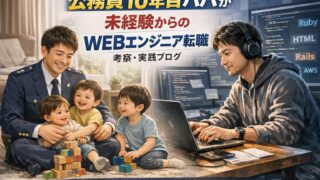 就学前のこどもを3人養う公務員10年目パパが、「未経験からのWEBエンジニア転職」について考察・実践します。時間・家族・本業への向き合い方なども紹介します。